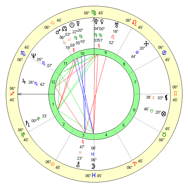 | Sun | 22 Virgo 6 | 23 Virgo 6 | 27 Scorpio 37 |