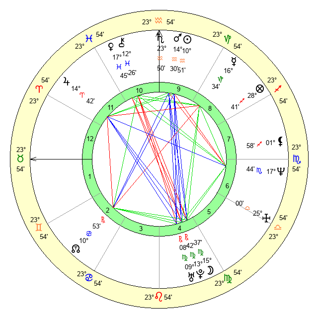 | Moon | 15 Virgo 38 | 10 Pisces 40 | 3 Sagittarius 31 |