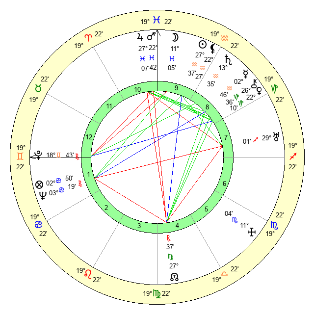 | Mars | 22 Pisces 42 | 17 Cancer 16 | 21 Gemini 14 |