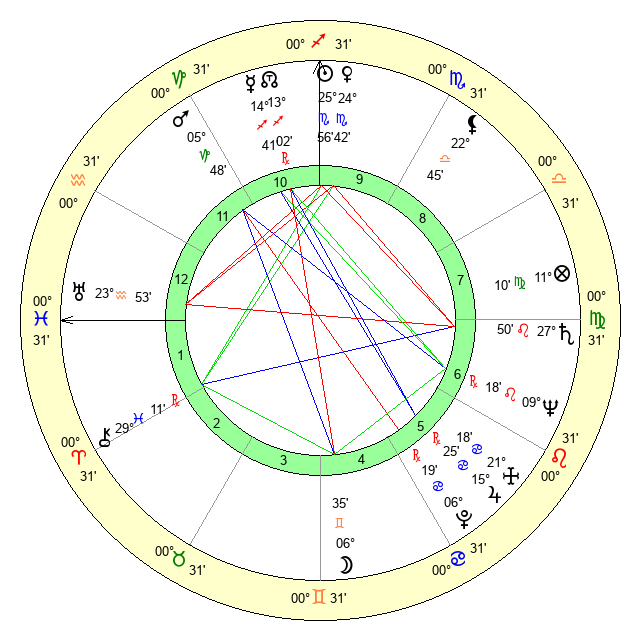 | Sun | 25 Scorpio 56 | 27 Scorpio 14 | 13 Pisces 27 |