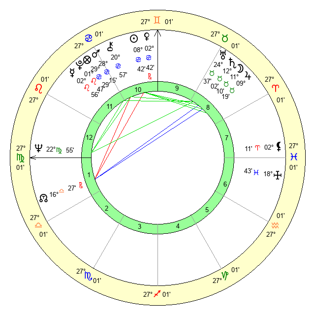 | Mars | 28 Cancer 16 | 7 Virgo 36 | 22 Virgo 22 |