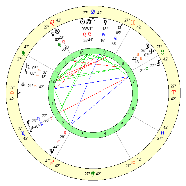 | Moon | 4 Gemini 17 | 27 Leo 48 | 9 Capricorn 44 |