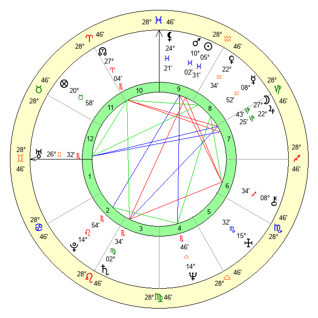 | Jupiter | 22 Capricorn 21 | 11 Gemini 56 | 1 Aquarius 56 |