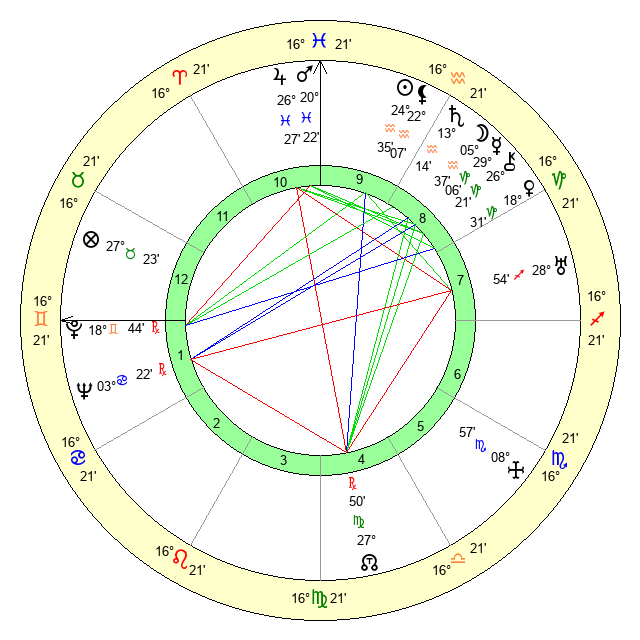 | Sun | 24 Aquarius 36 | 26 Aquarius 15 | 23 Gemini 10 |