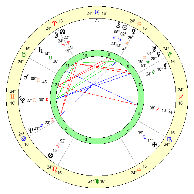 | Moon | 24 Aries 24 | 26 Sagittarius 33 | 15 Gemini 28 |