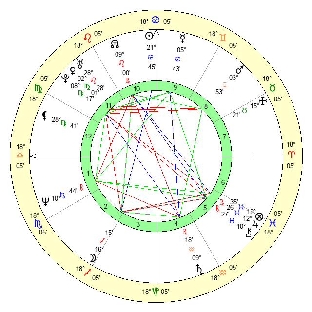 | Mercury | 5 Cancer 44 | 15 Leo 5 | 18 Libra 31 |