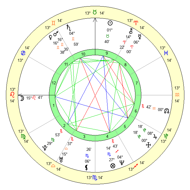 Moon | 15 Leo 44 | 9 Aquarius 29 | 22 Cancer 54 |