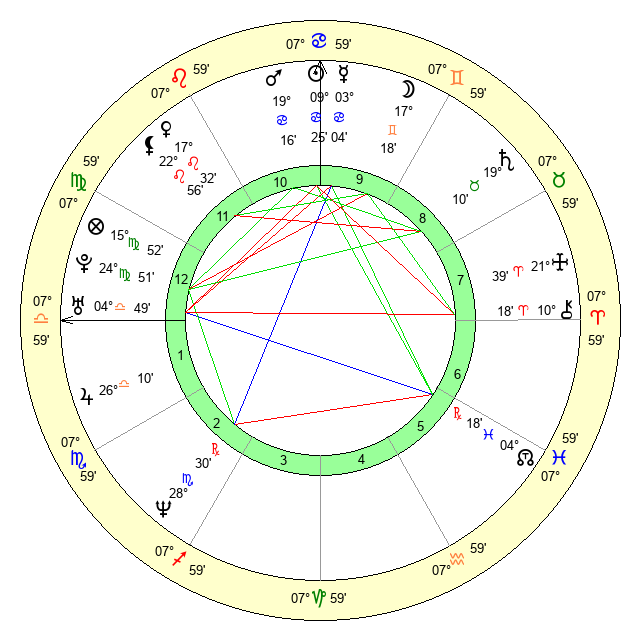 Sun | 9 Cancer 26 | 10 Cancer 6 | 2 Virgo 4 |