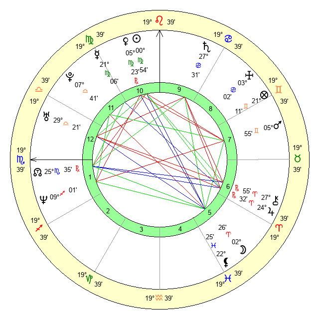 | Venus | 5 Virgo 23 | 28 Cancer 50 | 5 Virgo 57 |