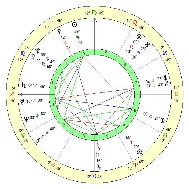 | Moon | 21 Taurus 52 | 9 Libra 47 | 17 Libra 16 |