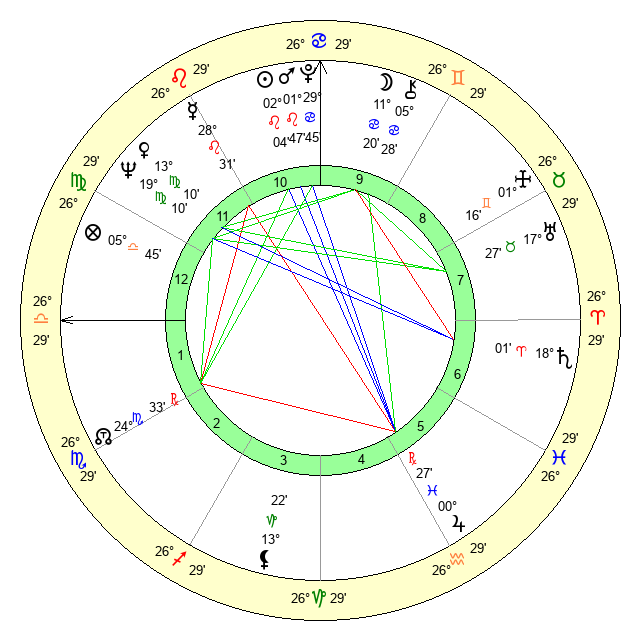 | Moon | 11 Cancer 22 | 14 Leo 26 | 23 Virgo 9 |