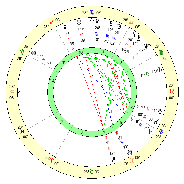 | Moon | 6 Scorpio 3 | 15 Sagittarius 10 | 29 Virgo 39 |