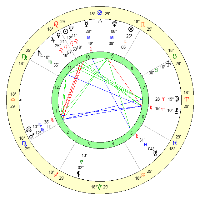 Mercury | 29 Cancer 18 | 5 Leo 53 | 20 Scorpio 27 |