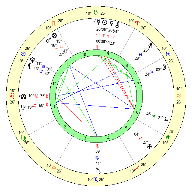 | Sun | 28 Aries 8 | 28 Aries 54 | 4 Leo 7 |
