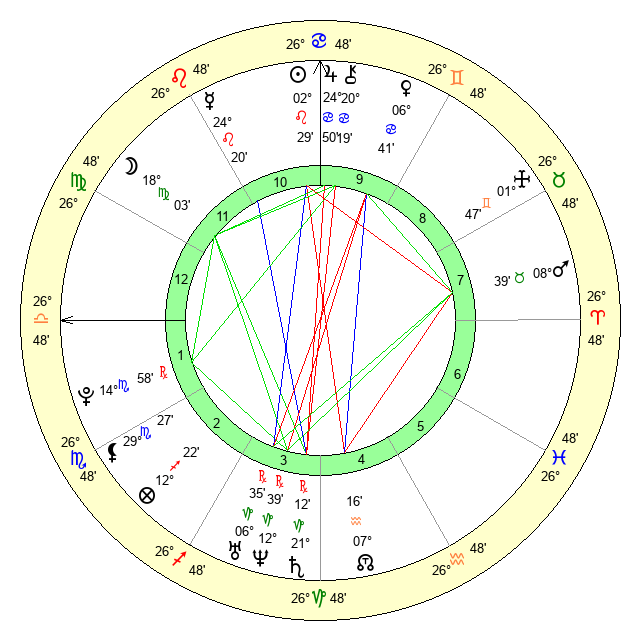 | Moon | 18 Virgo 8 | 14 Leo 26 | 21 Sagittarius 23 |