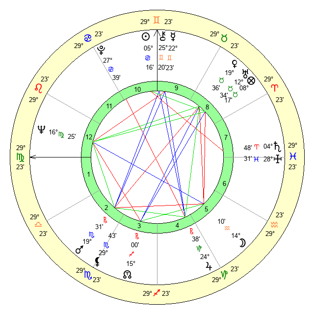 | Neptune | 16 Virgo 25 | 2 Aries 9 | 19 Virgo 7 |