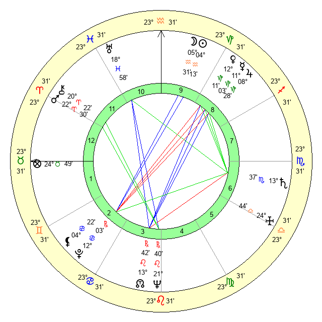 | Moon | 5 Aquarius 34 | 6 Sagittarius 16 | 24 Virgo 13 |