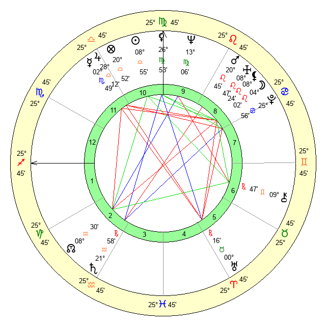 | Neptune | 13 Virgo 6 | 0 Aries 29 | 14 Virgo 30 |