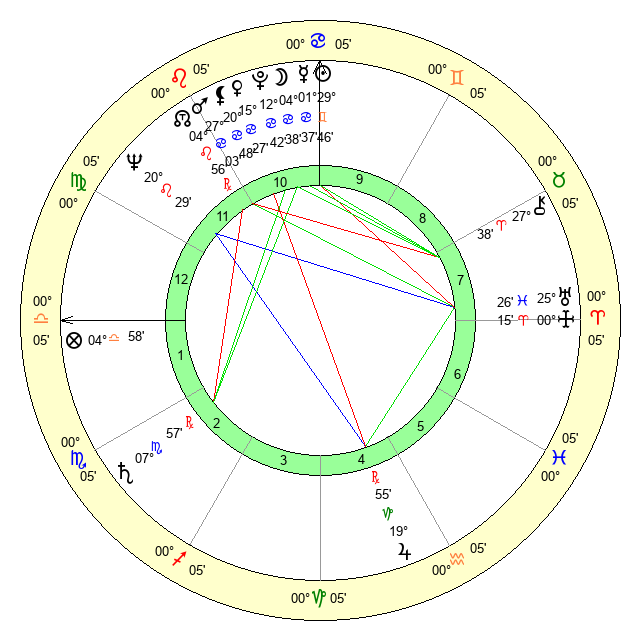 | Sun | 29 Gemini 46 | 0 Cancer 34 | 6 Libra 1 |