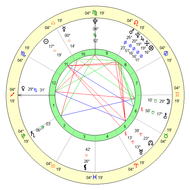| Neptune | 4 Virgo 53 | 0 Aries 15 | 5 Virgo 25 |