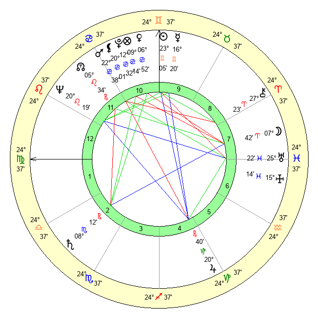 | Sun | 23 Gemini 5 | 23 Gemini 53 | 29 Virgo 9 |