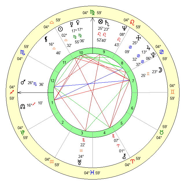 | Venus | 17 Virgo 36 | 8 Virgo 29 | 1 Aquarius 48 |