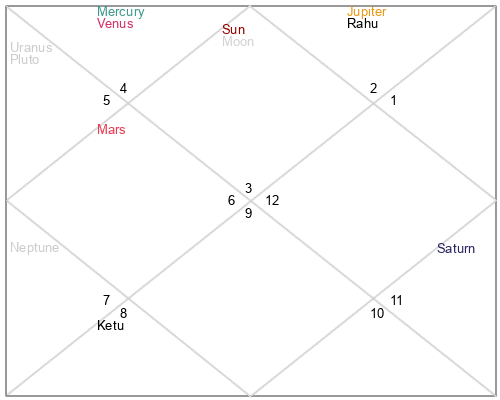 | Rahu | 12 Gemini 30 | 22 Pisces 1 | 9 Gemini 20 |