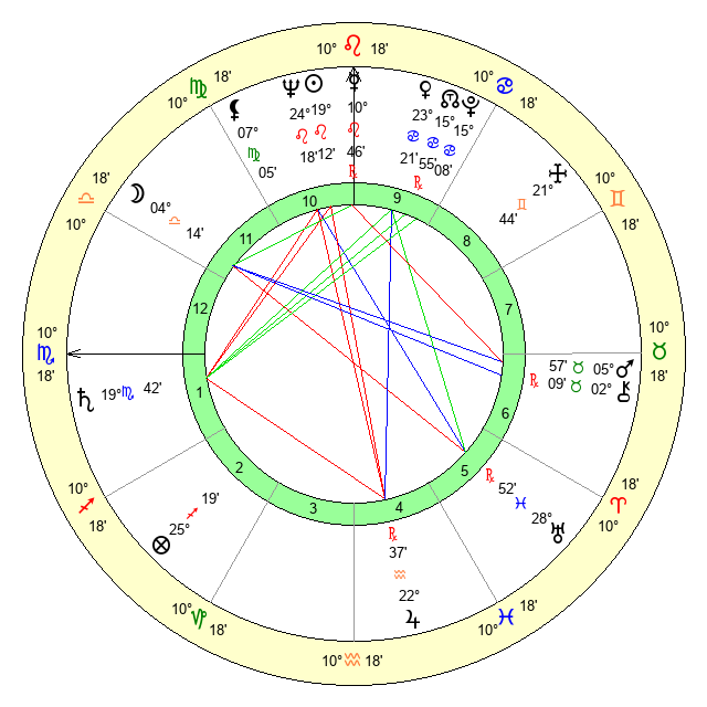 | Neptune | 24 Leo 19 | 1 Aries 46 | 26 Leo 58 |