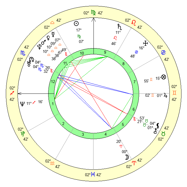 | Sun | 17 Virgo 7 | 17 Virgo 16 | 5 Scorpio 24 |