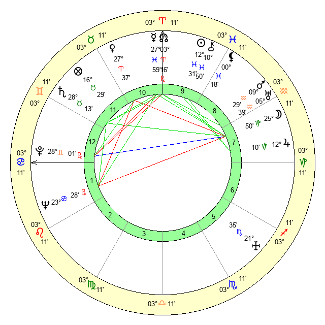 | Sun | 12 Pisces 32 | 13 Pisces 22 | 1 Cancer 35 |