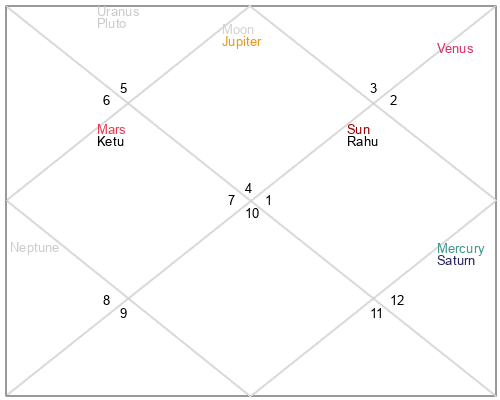 | Ketu | 7 Scorpio 40 | 25 Virgo 50 | 4 Scorpio 36 |