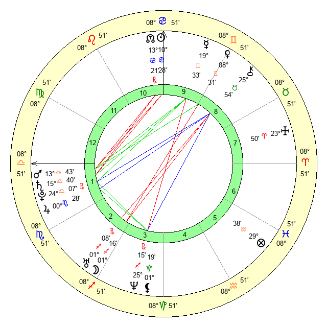 | Mars | 13 Libra 43 | 8 Virgo 46 | 6 Scorpio 34 |