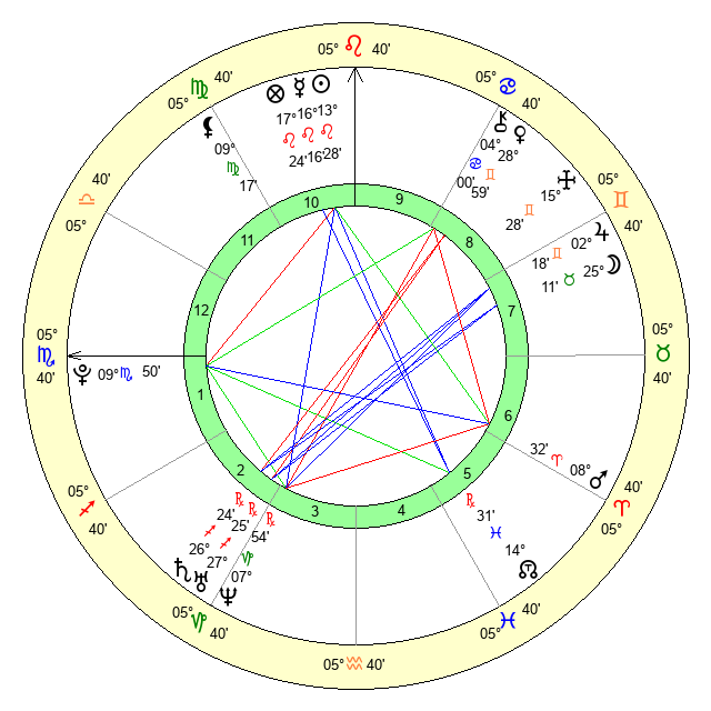 | Mercury | 16 Leo 17 | 5 Leo 52 | 15 Libra 23 |