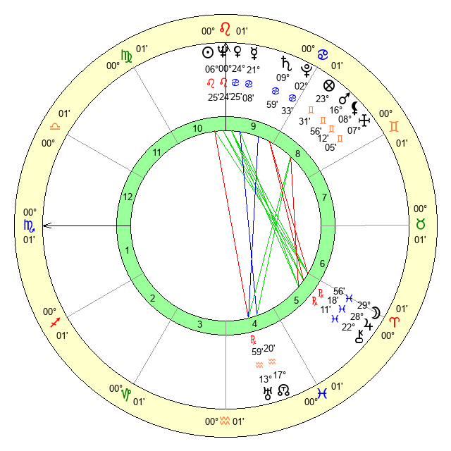 | Sun | 6 Leo 25 | 7 Leo 47 | 24 Scorpio 16 |