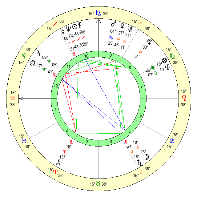 | Moon | 25 Gemini 5 | 27 Sagittarius 9 | 27 Taurus 21 |
