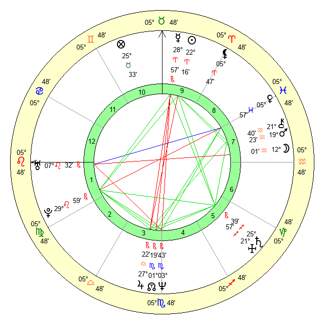 | Sun | 22 Aries 16 | 23 Aries 2 | 26 Gemini 56 |