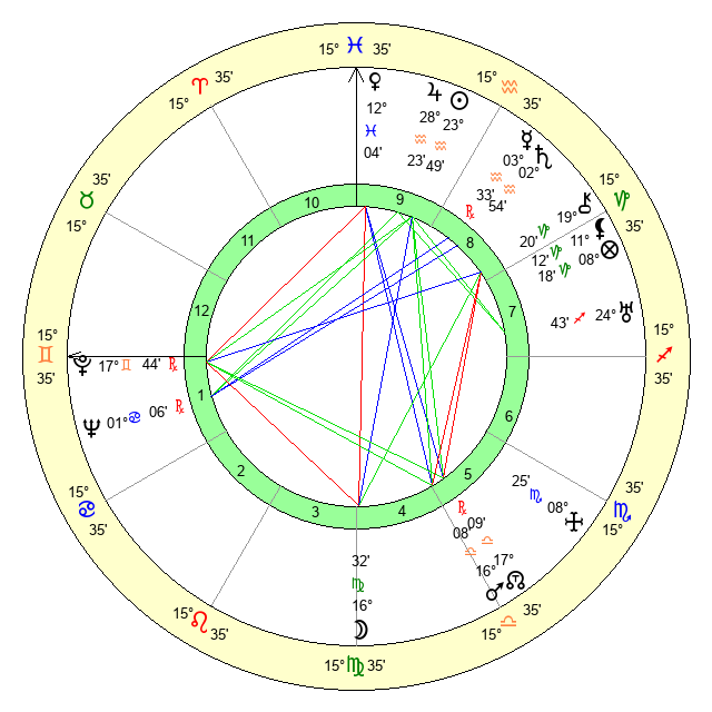 | Moon | 16 Virgo 31 | 8 Virgo 8 | 24 Aquarius 35 |