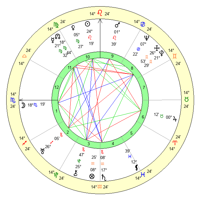 | Moon | 18 Scorpio 25 | 14 Gemini 37 | 13 Aries 39 |