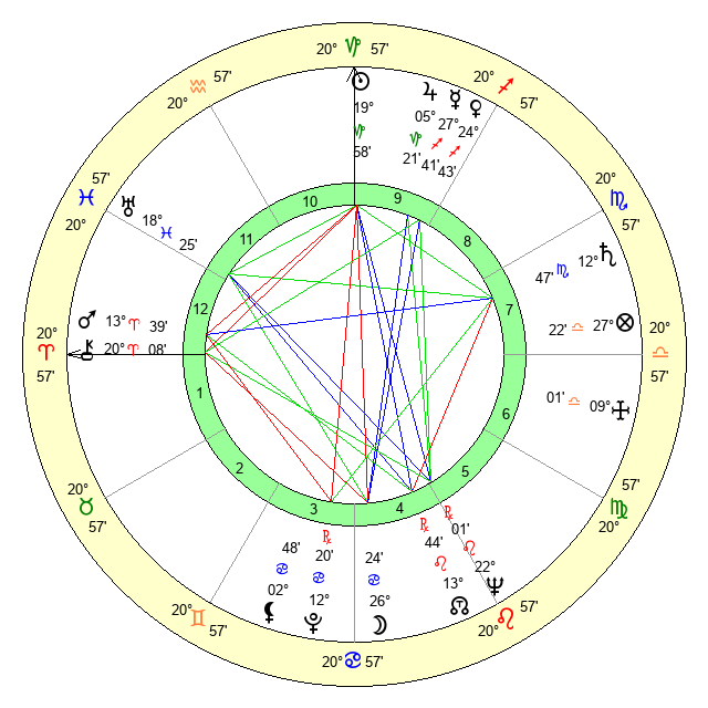Mars | 13 Aries 40 | 28 Cancer 22 | 17 Gemini 45 |