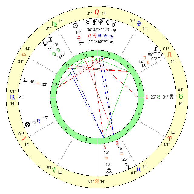 | Moon | 11 Virgo 5 | 29 Pisces 1 | 12 Capricorn 15 |
