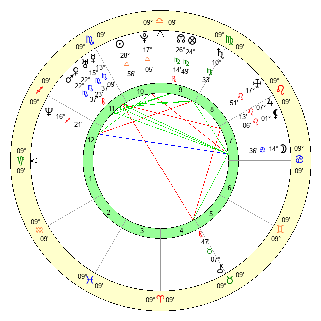 | Saturn | 10 Virgo 55 | 26 Pisces 10 | 14 Virgo 5 |