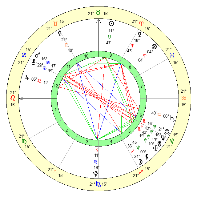 | Moon | 24 Sagittarius 31 | 19 Cancer 42 | 15 Pisces 0 |