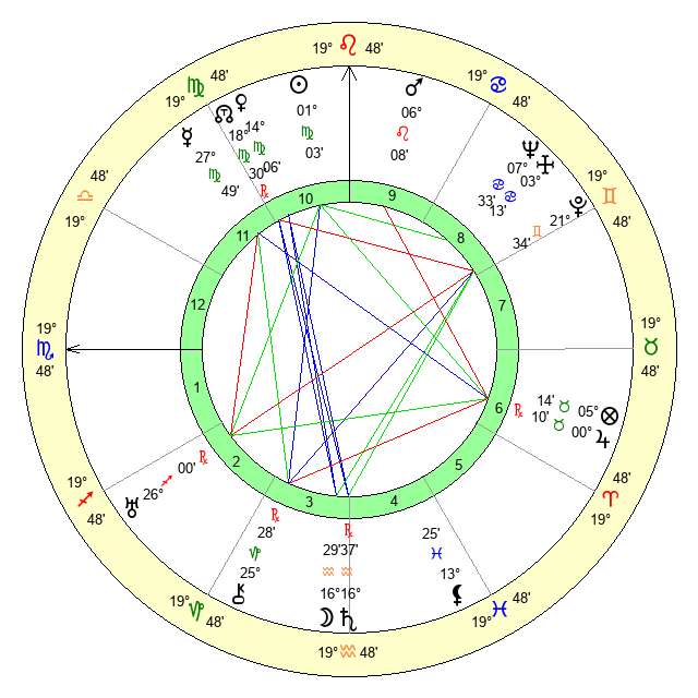 | Sun | 1 Virgo 4 | 1 Virgo 47 | 1 Capricorn 29 |