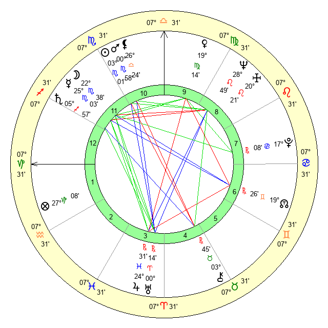 | Moon | 22 Scorpio 45 | 9 Capricorn 7 | 29 Gemini 54 |
