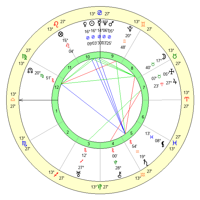 | Sun | 16 Cancer 3 | 16 Cancer 47 | 13 Scorpio 52 |