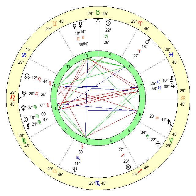| Moon | 16 Virgo 6 | 4 Sagittarius 13 | 29 Sagittarius 41 |