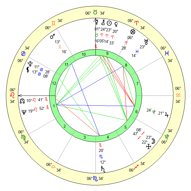 | Neptune | 19 Leo 52 | 0 Aries 31 | 21 Leo 27 |