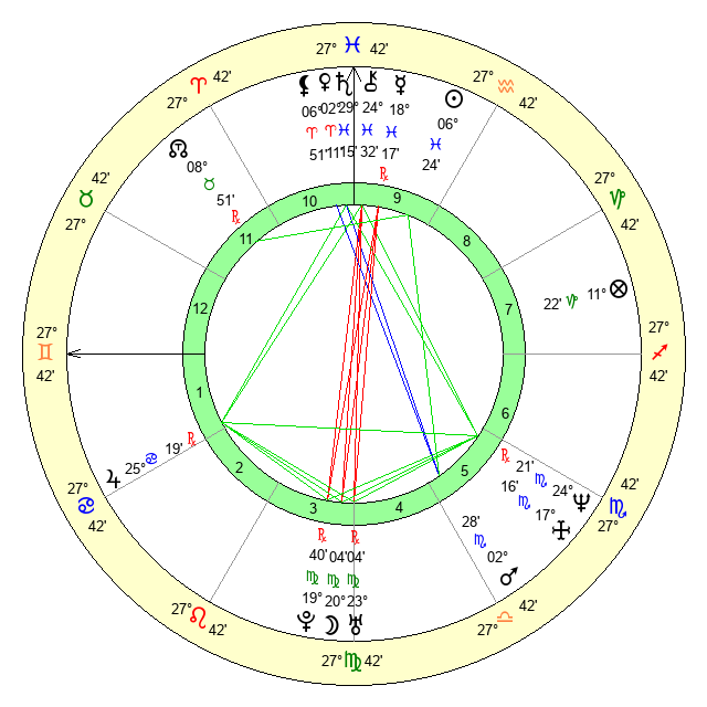 | Moon | 19 Virgo 57 | 6 Aquarius 26 | 6 Scorpio 46 |