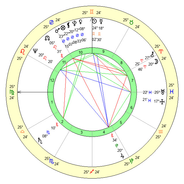 | Sun | 24 Gemini 3 | 24 Gemini 50 | 0 Libra 8 |
