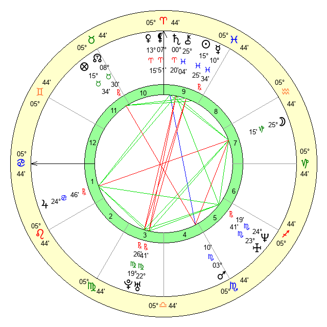 | Mars | 3 Scorpio 10 | 17 Cancer 41 | 18 Libra 23 |
